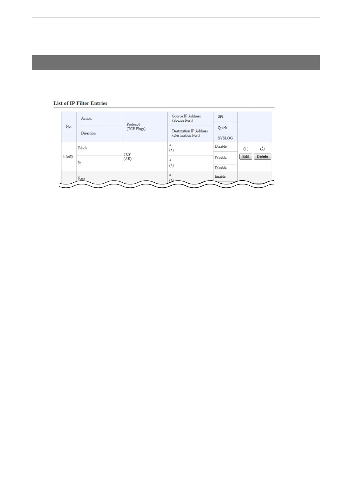 • The entry contents are loaded to the IP Filter Setting field (P5-35).