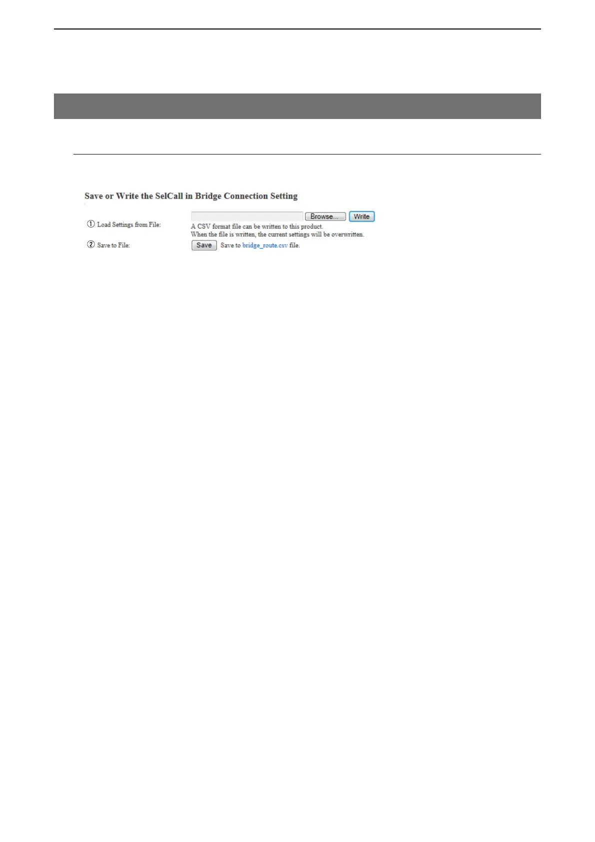 w Save to the File …………… Click to save the [SelCall in Bridge Connection Setting flie] contents in the