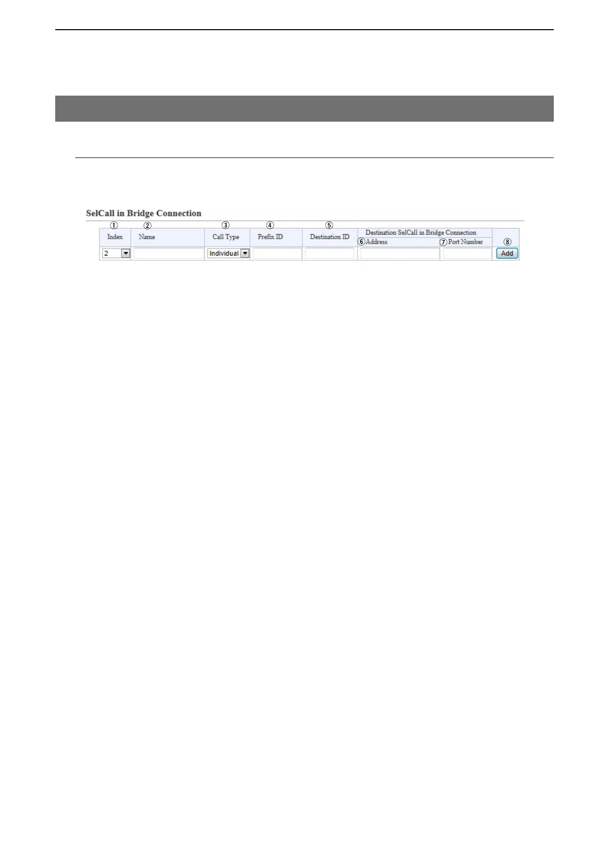 i <Add> …………………… Click to add a SelCall rule to the [SelCall in Bridge Connection List].