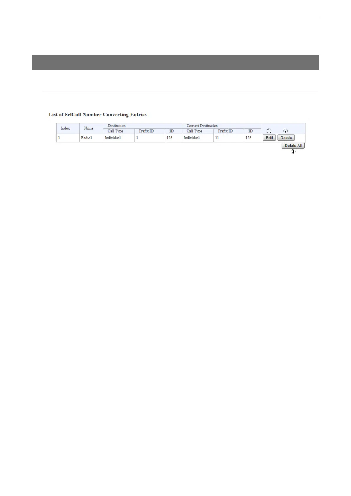 q <Edit> ……………………… Click to load the entry on the [SelCall Number Converting] field.