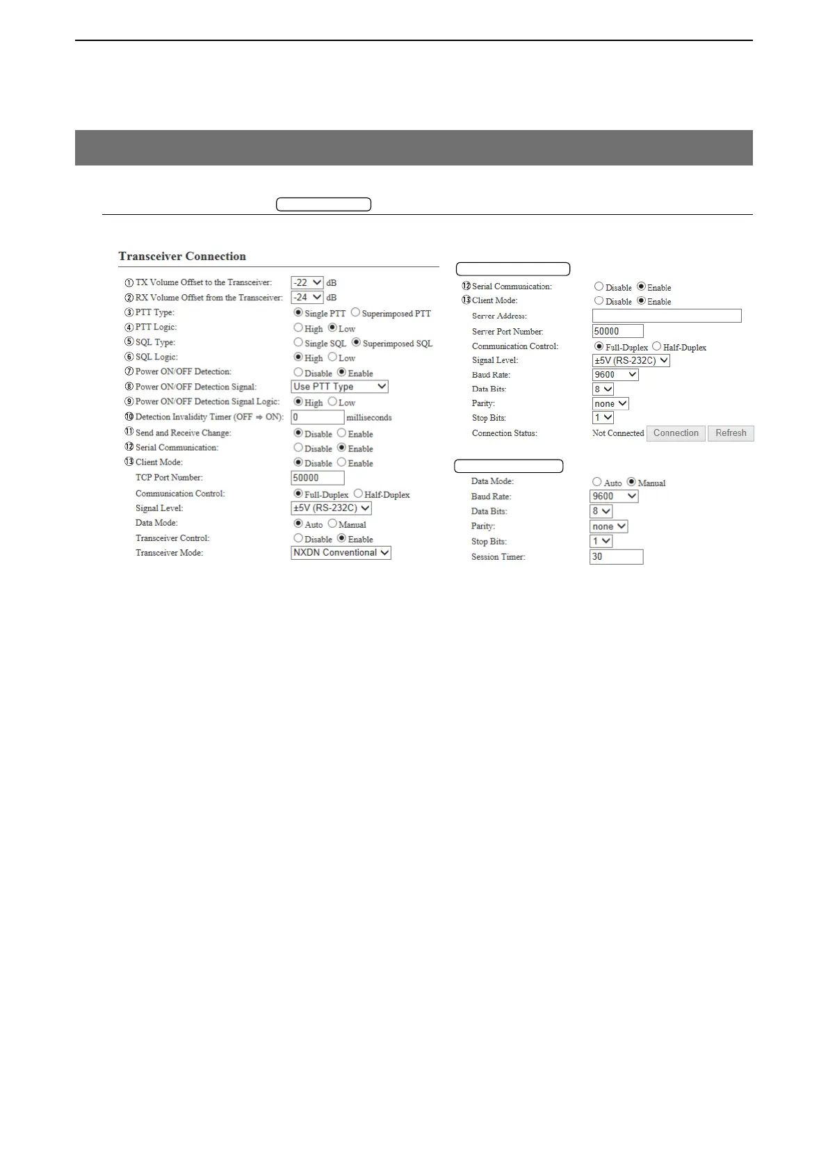 [Port Settings]–[Transceiver 1 (TRX1)/[Transceiver 2 (TRX2)]