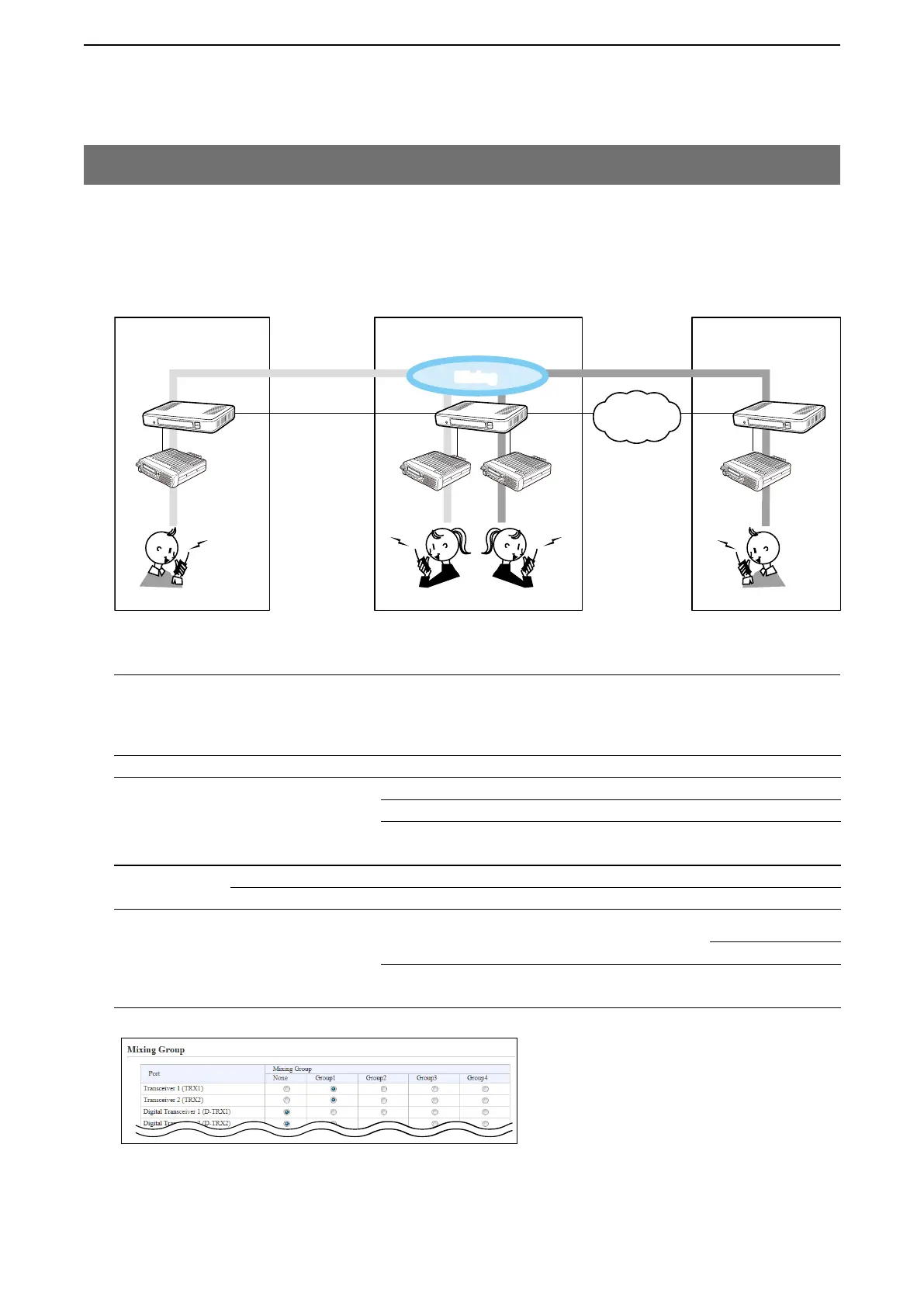 • In this example, the audio signal of [TRX1] port and [TRX2] port (VE-PG3 in Area B) are mixed as illustrated