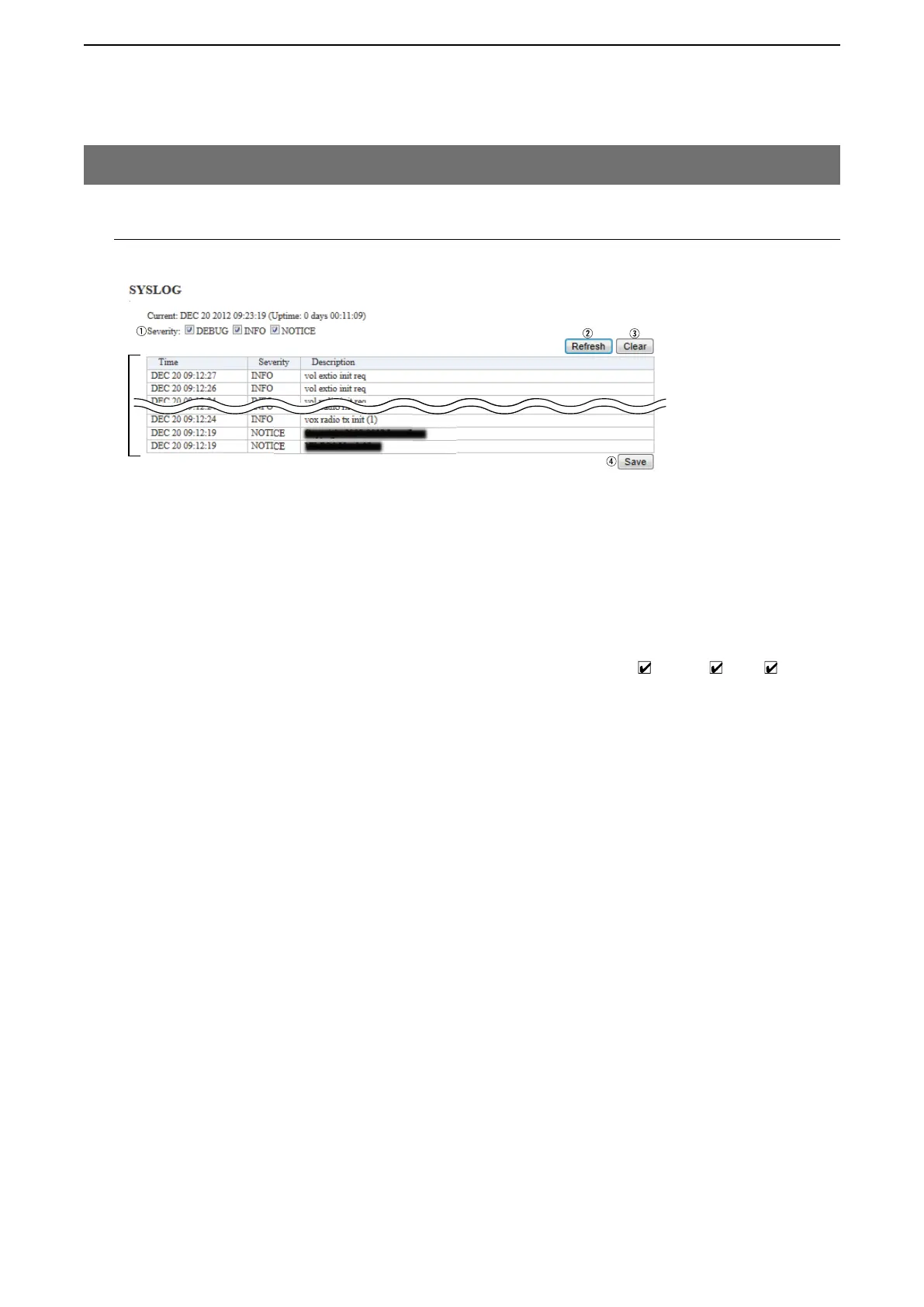 r <Save> …………………… Click to save the log to a PC with a text file (extension: “txt”).