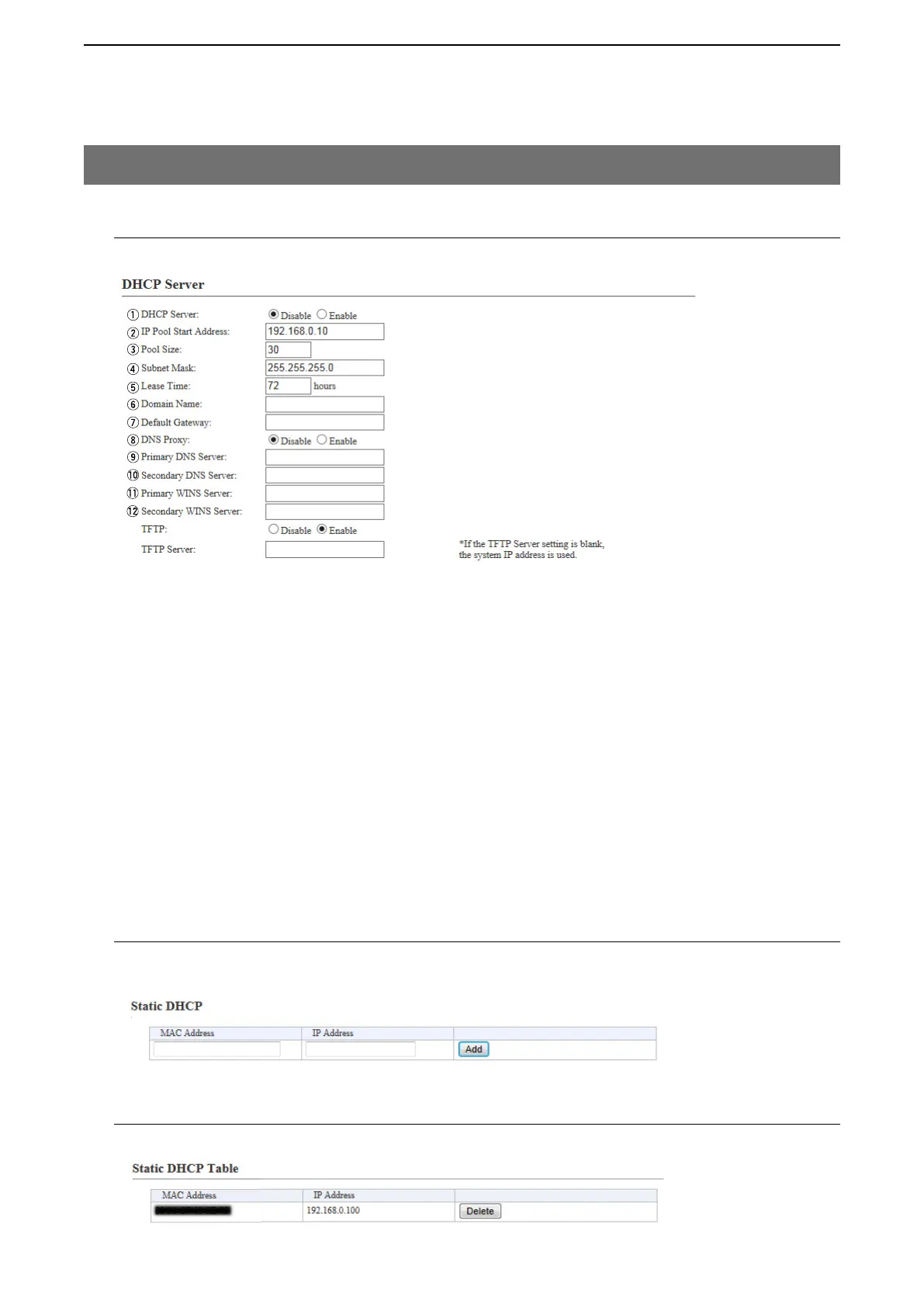!1 TFTP ……………………… Select “Enable” to use TFTP server, which is used for provisioning.