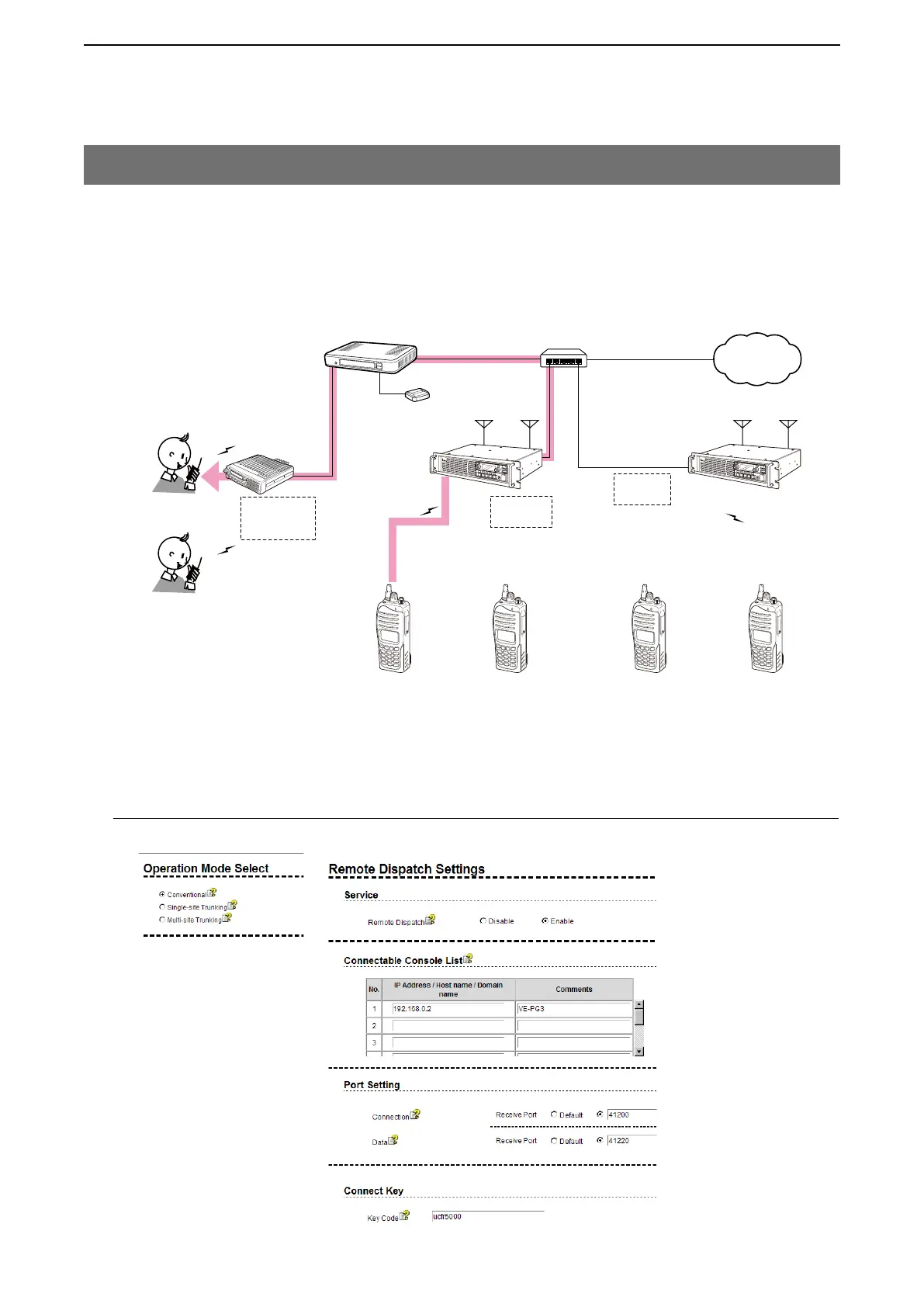 The IC-FR5000 series can be connected with the VE-PG3 via Ethernet cable (IP network) using the UC-FR5000
