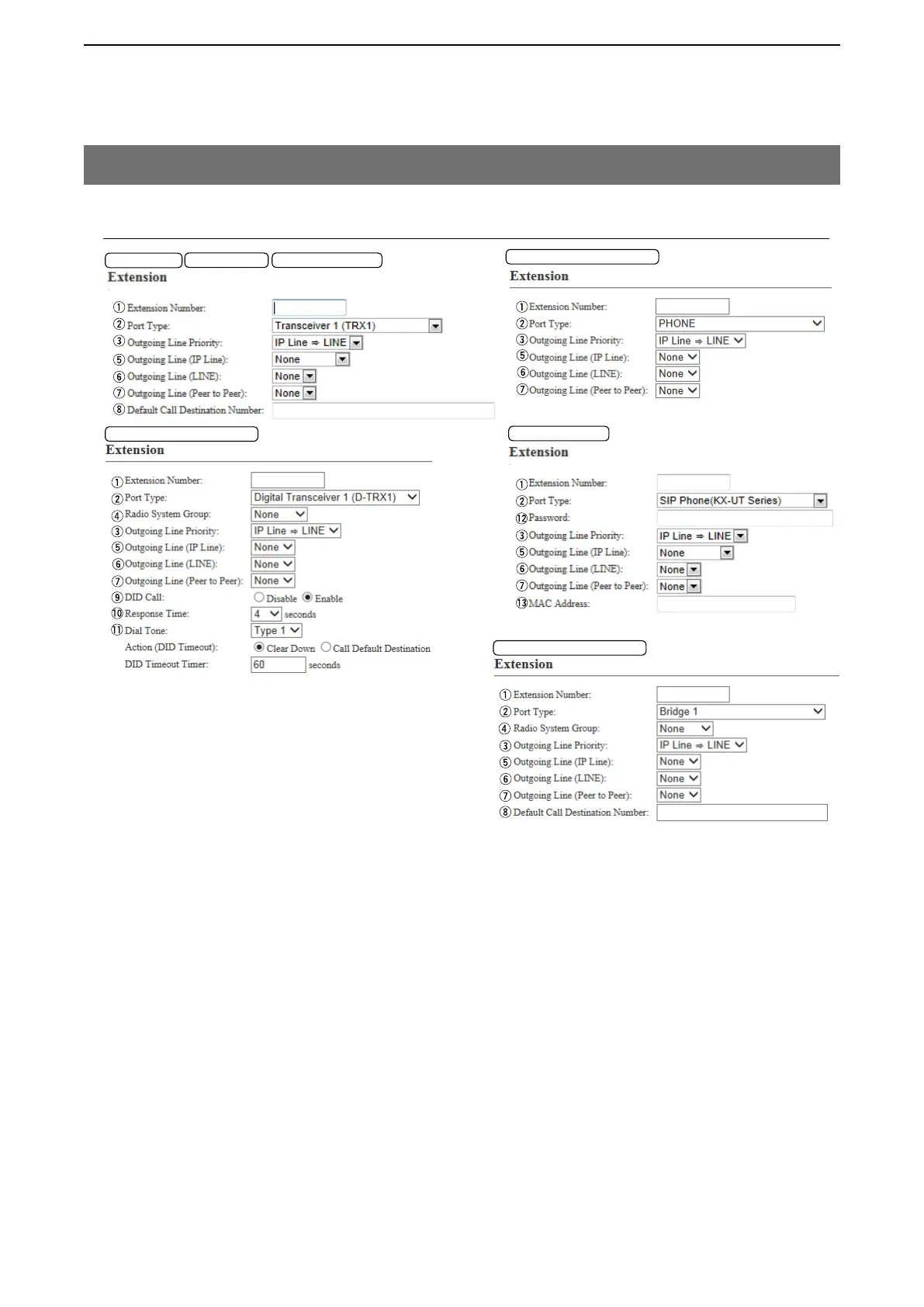 !5 DID Timeout Timer ……… Enter a period of time when [Action (DID Timeout)] starts. (Default: 60)