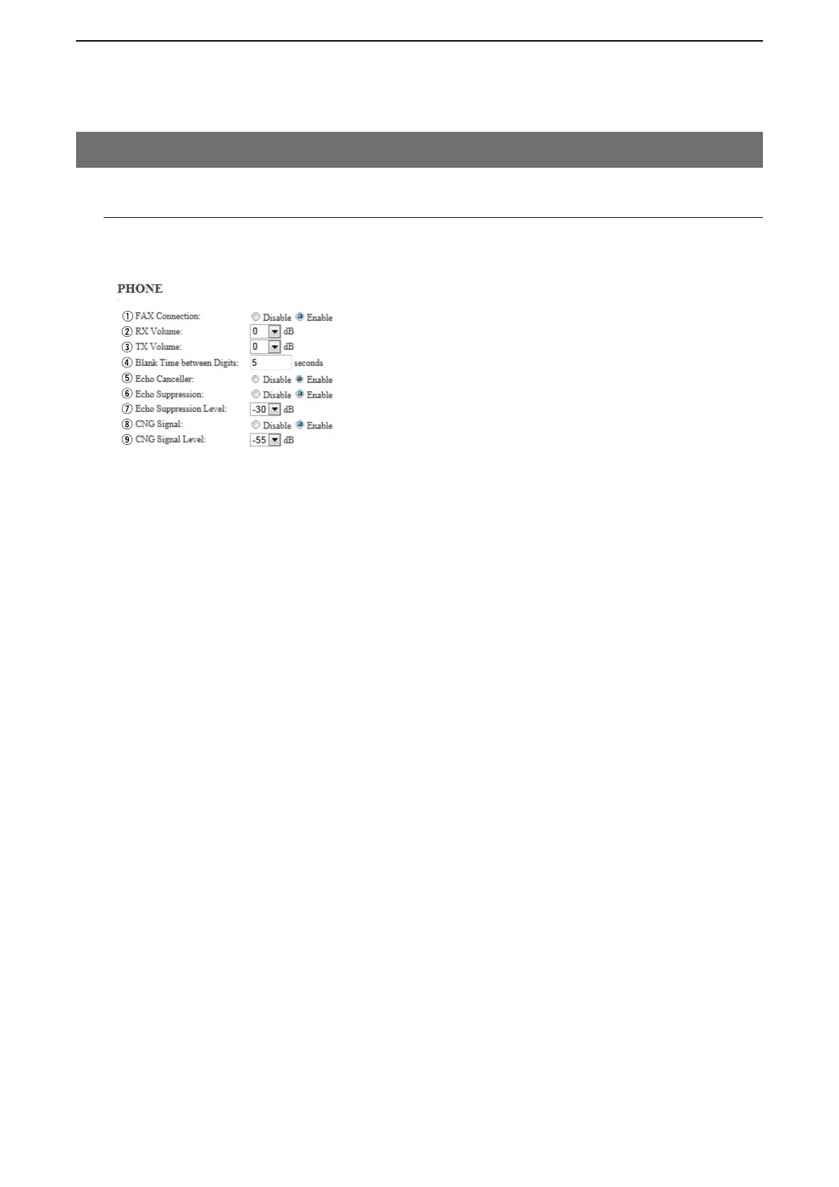 t Echo Canceller …………… Select “Enable” to turn ON the echo canceller. (Default: Enable)