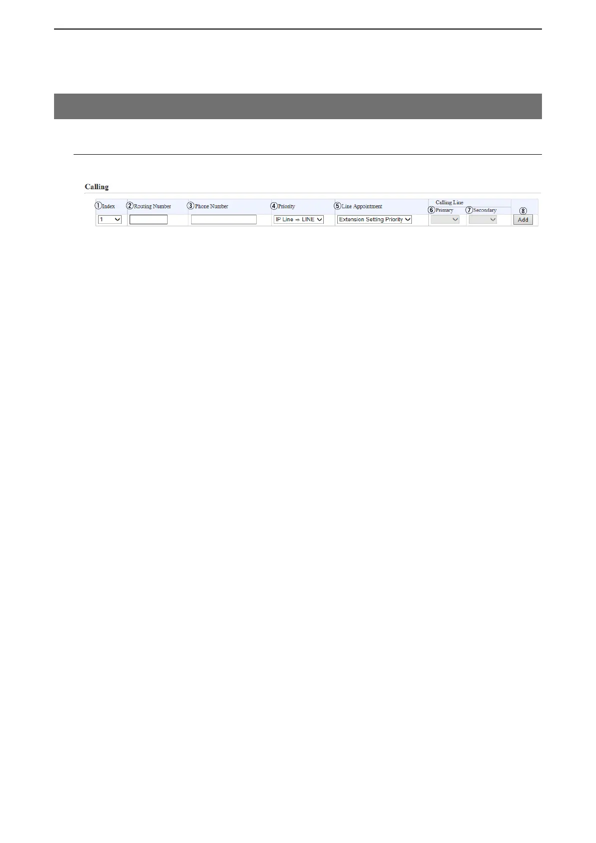 The call is initiated through the line selected in the [Calling Line (Primary,