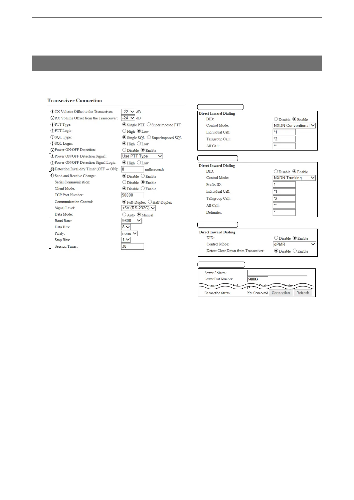 [Port Settings]–[Transceiver 1 (TRX1)/[Transceiver 2 (TRX2)]
