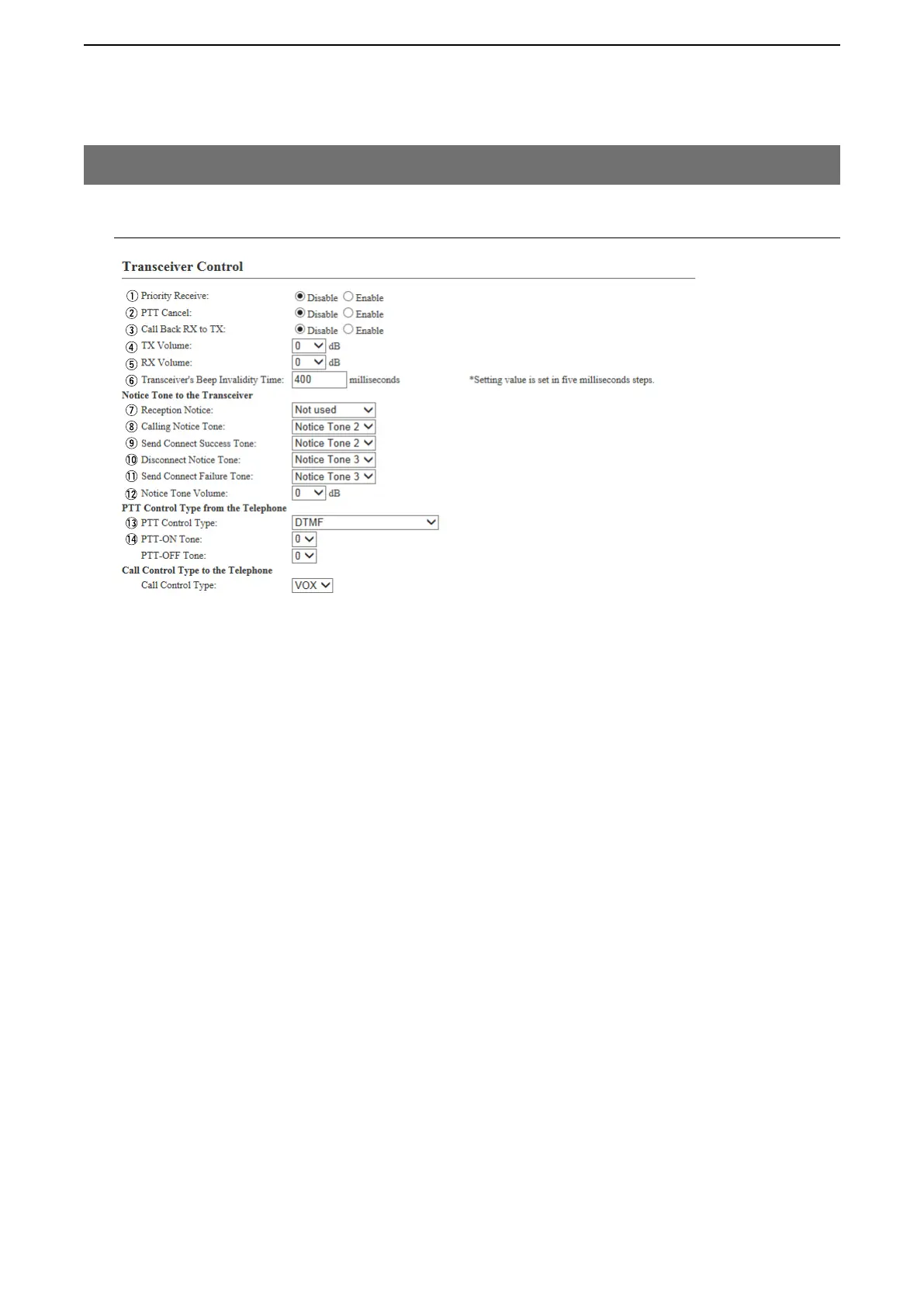 [Port Settings]–[Transceiver 1 (TRX1)/[Transceiver 2 (TRX2)]