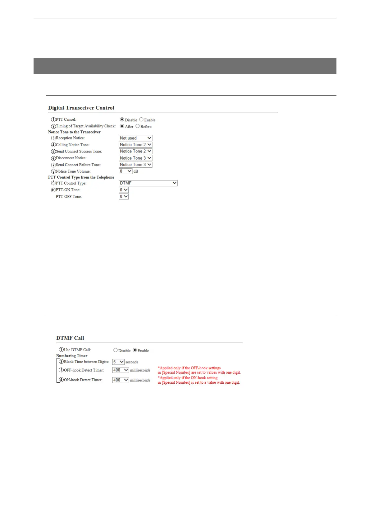 *: Appears when “Enable” is selected in the [Use DTMF Call] item.