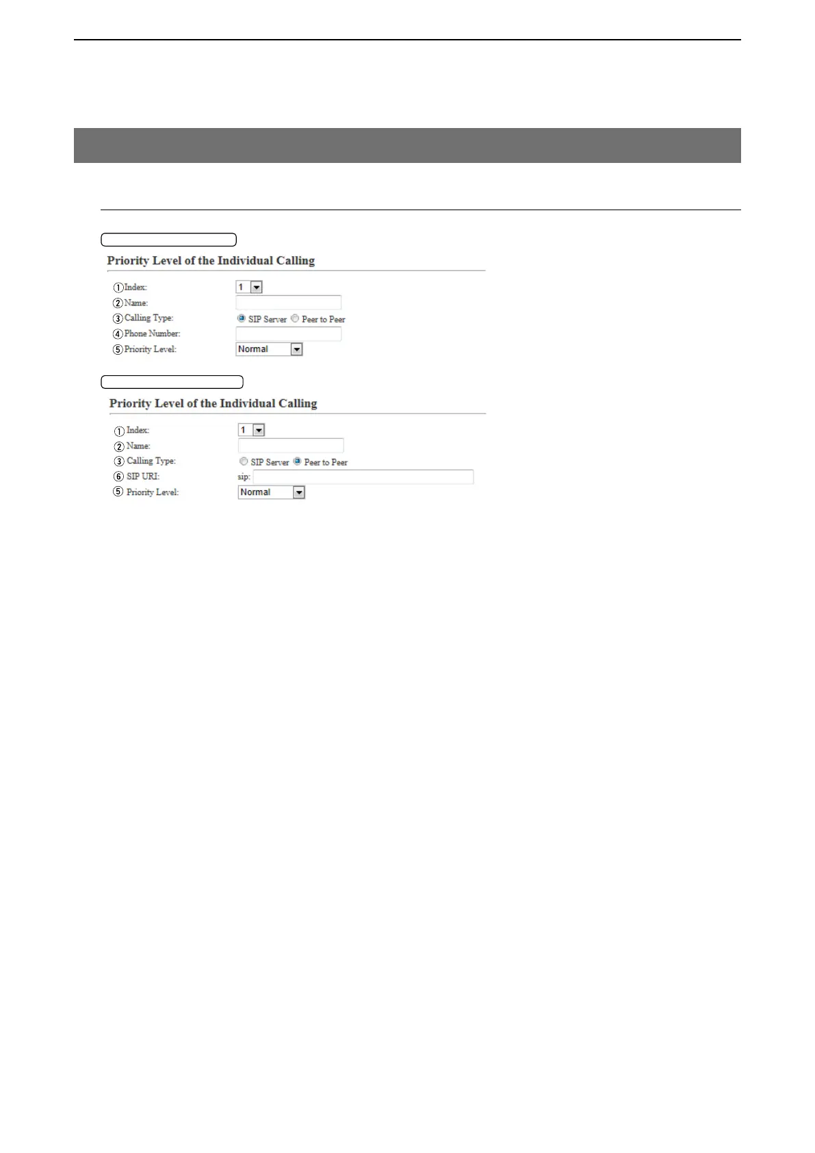 t Priority Level ……………… Select the priority level for the callee. (Default: Normal)