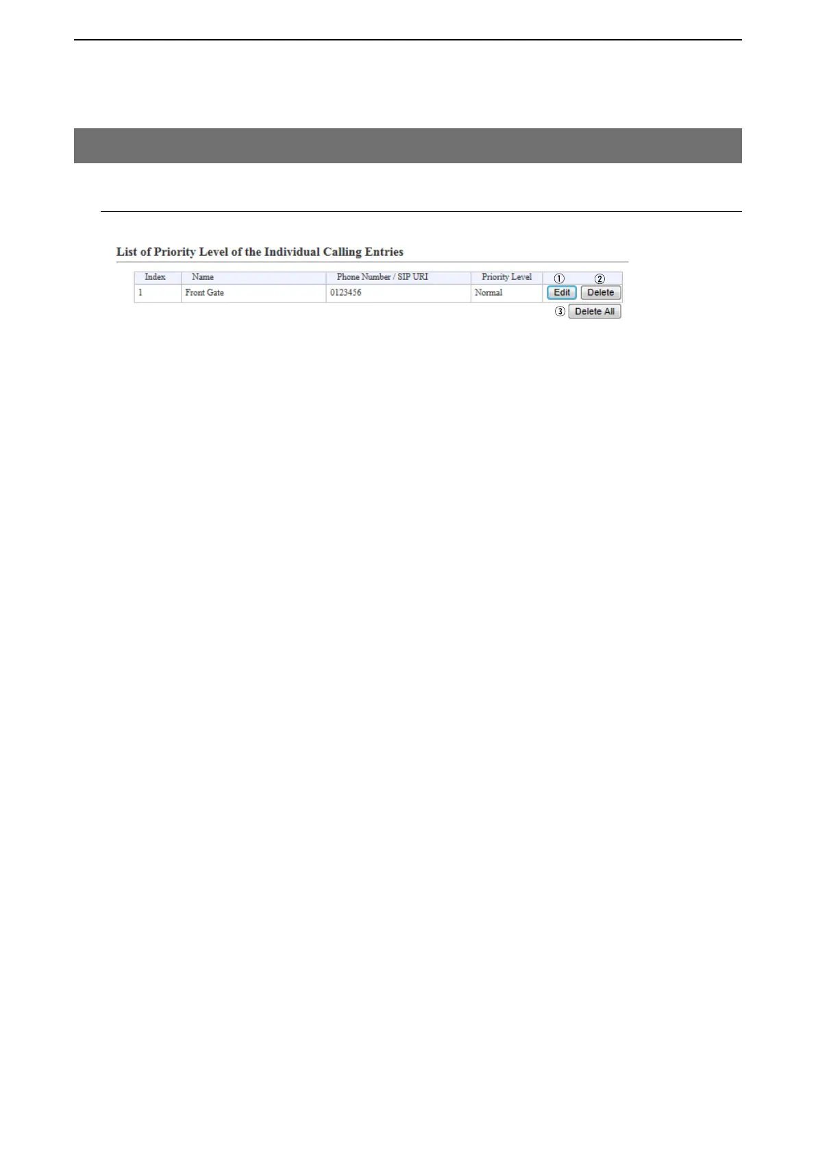 M List of Priority Level of the Individual Calling Entries