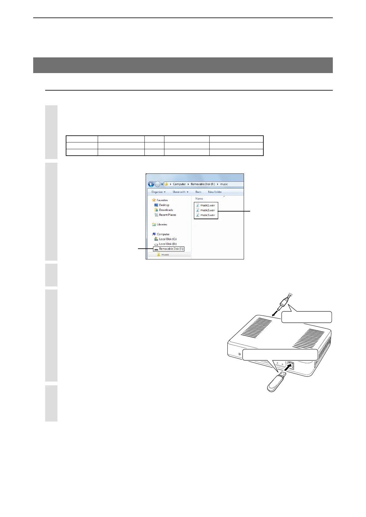 files (“music1.wav”–“music3.wav”), to the [USB] port,