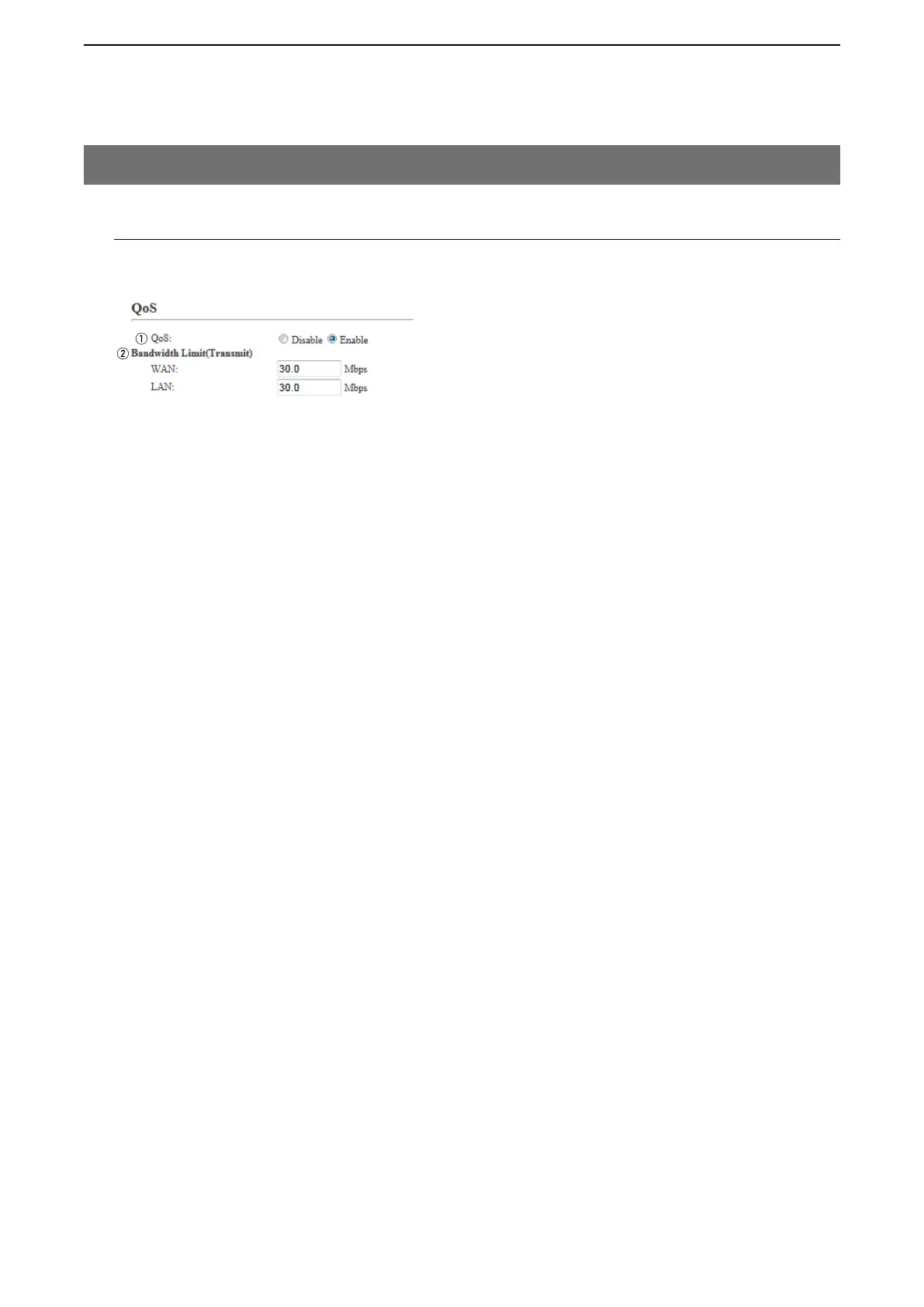 q QoS ……………………… Select “Enable” to apply the QoS rule. (Default: Enable)