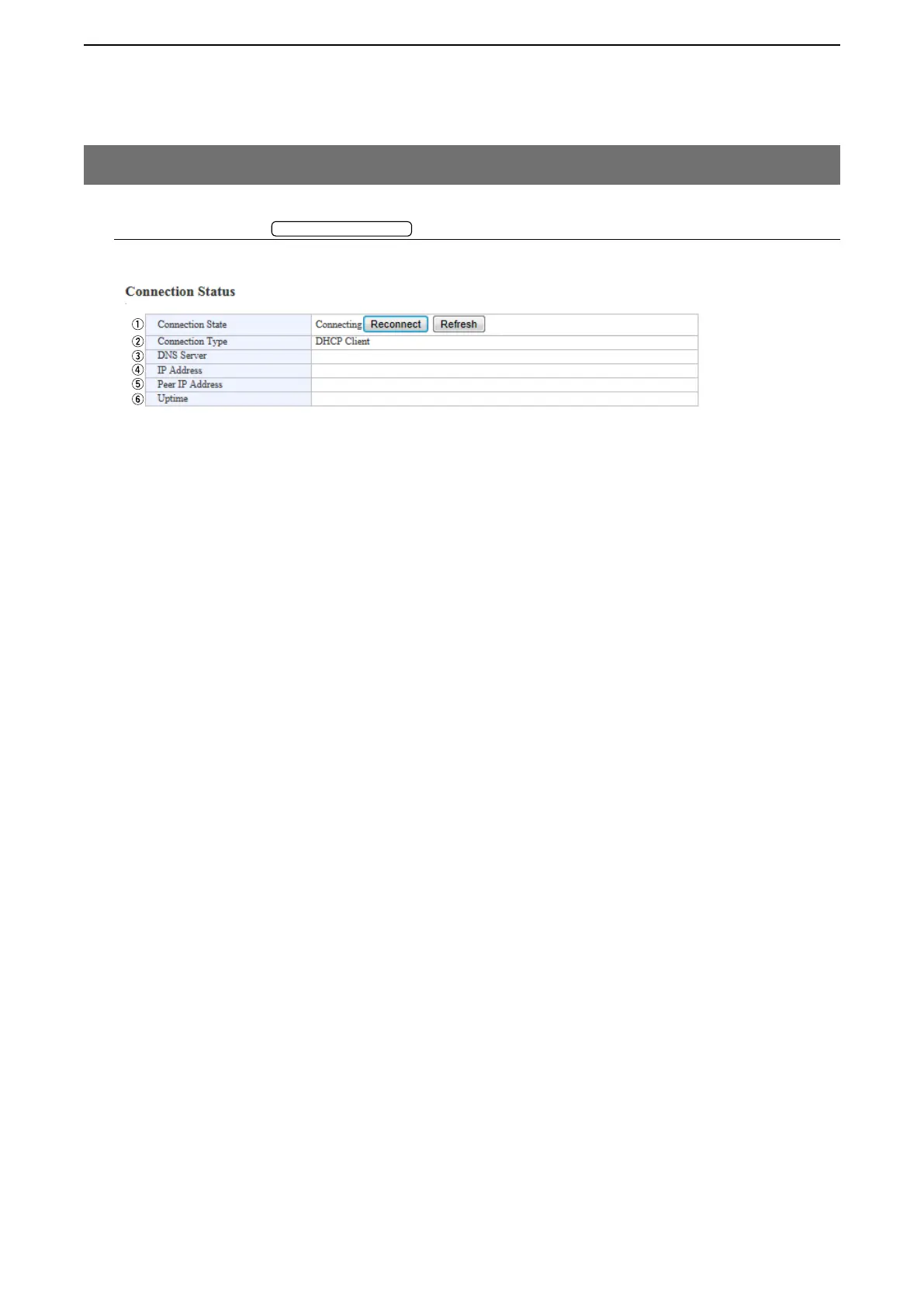 q Connection State ………… Displays the WAN connection status.