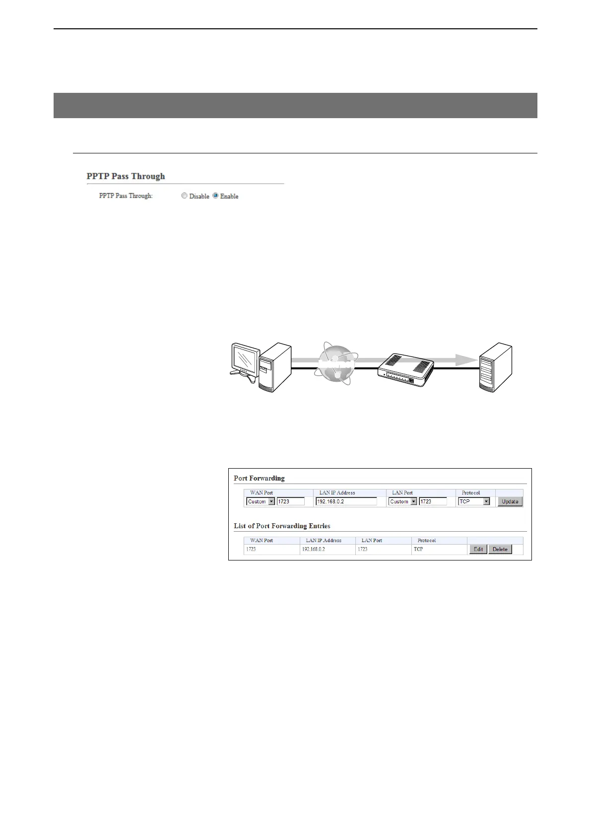 PPTP Pass Through ……… Select Enable to access the PPTP server (WAN) from the PPTP client (LAN),