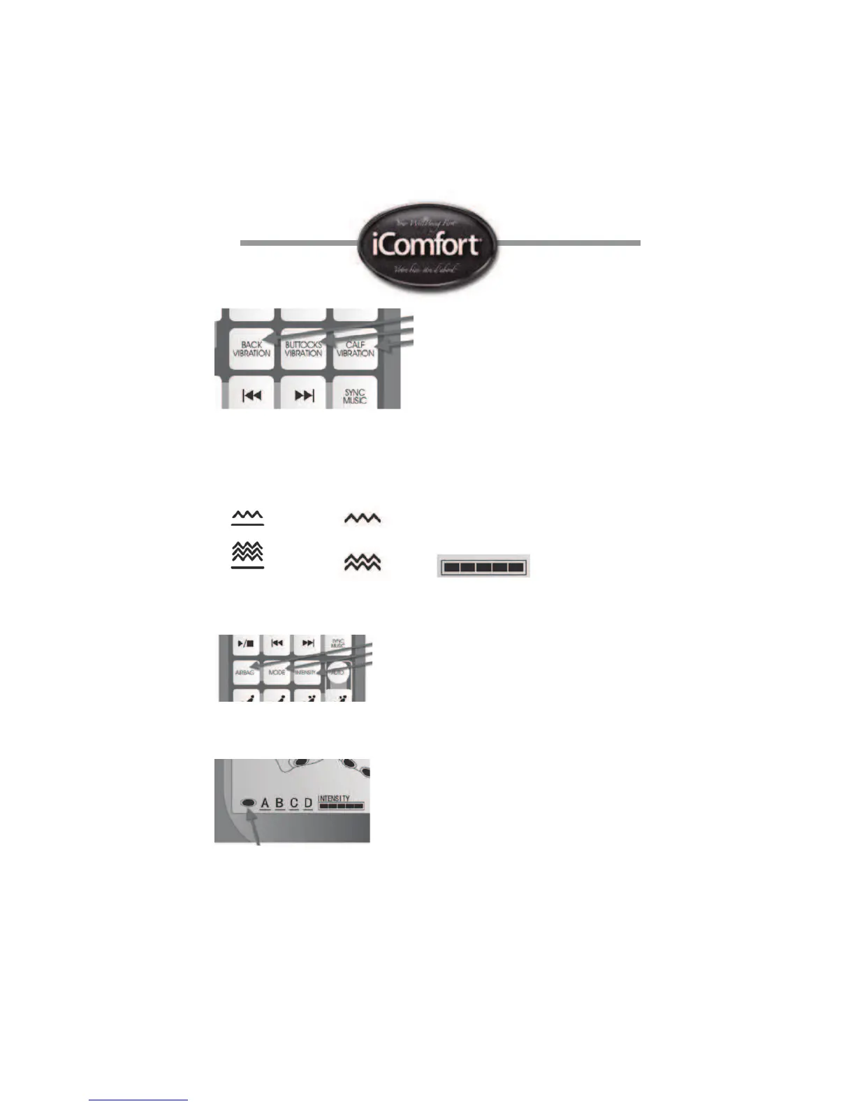 Each mode concentrates the airbag massage in a different area.
