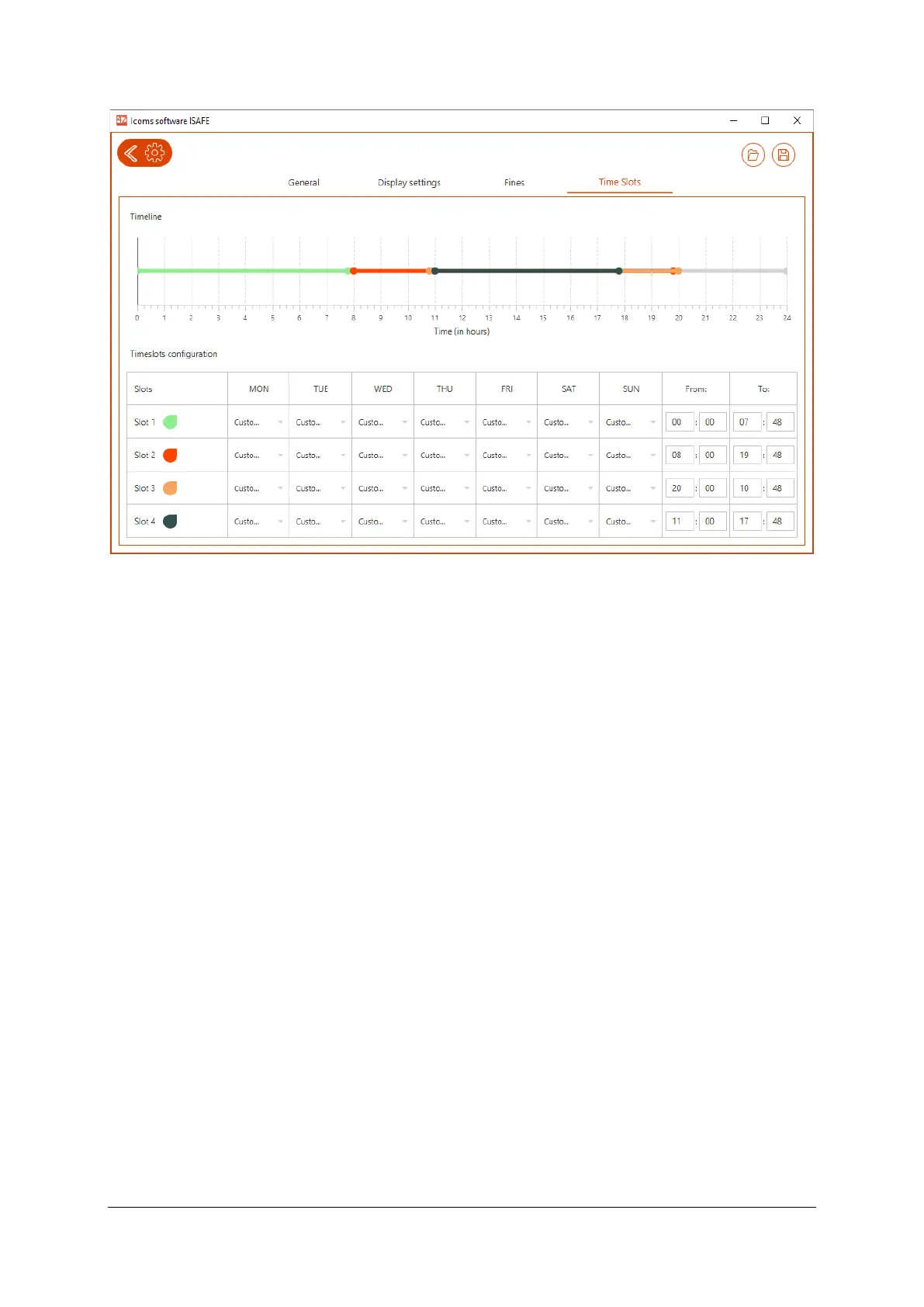icoms I-SAFE - Screenshot 16: Time Slots Interface