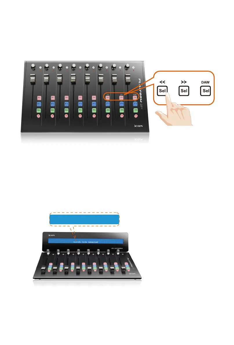 the DAW list, and then press the “DAW” (channel 8’s “Sel” button) button to