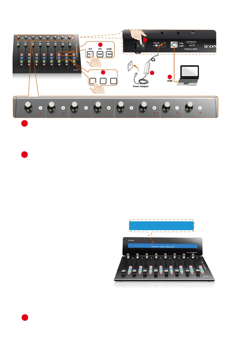 the DAW list, and then press the “DAW” (channel 8’s “Sel” button) button to
