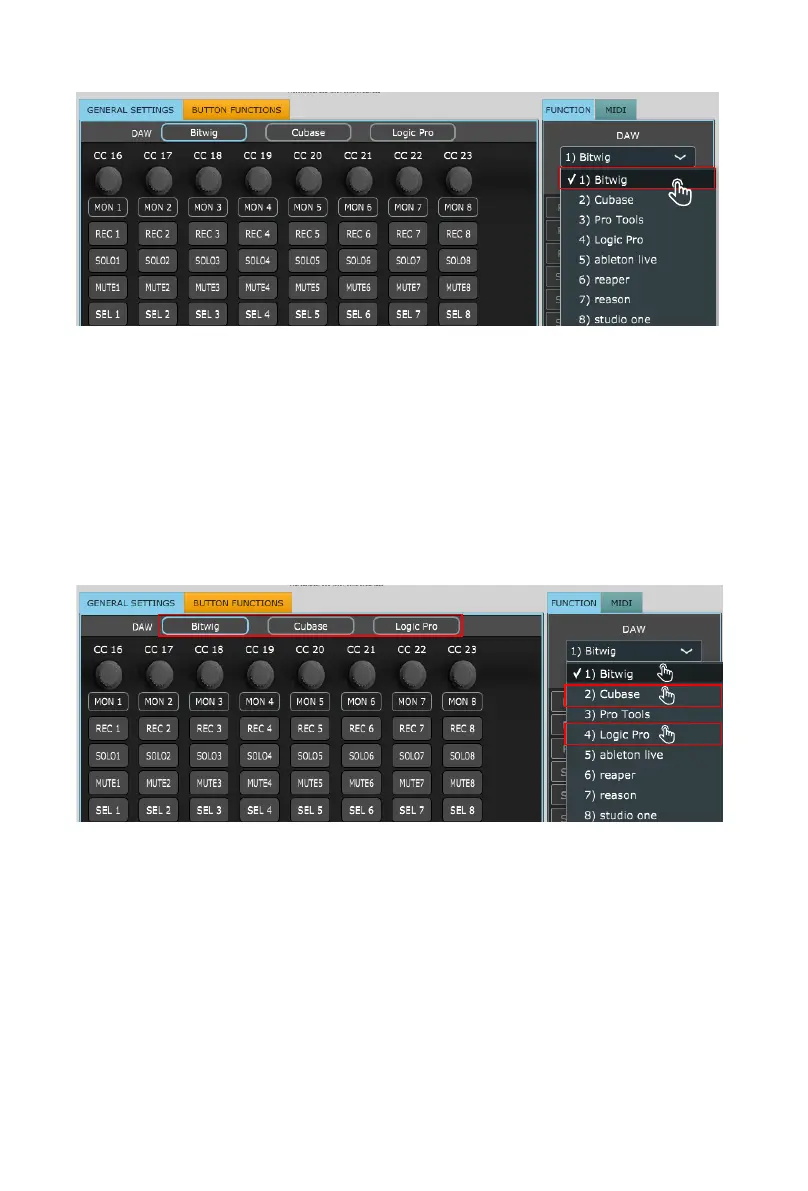 In the same way, let's load Cubase for button 2 and Logic for button 3. You will see