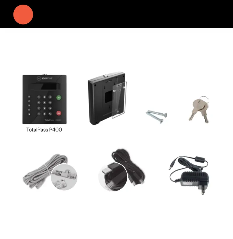 Below are the contents included with your TotalPass P400 time clock.