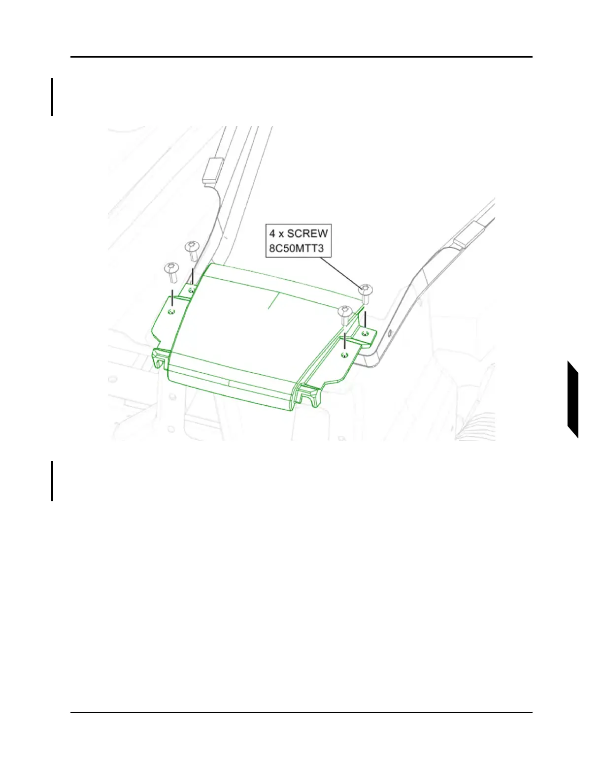 3. Remove 4x screws securing handhold from top of center console. Retain for reinstallation.