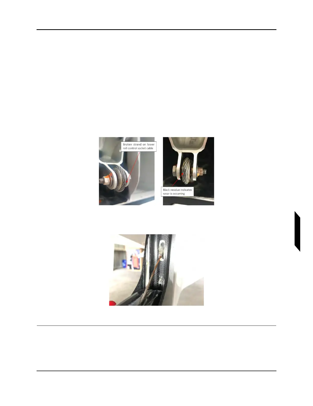 a. If there is evidence of wear on the rod end or the roll control cable as shown in Figure 9-4