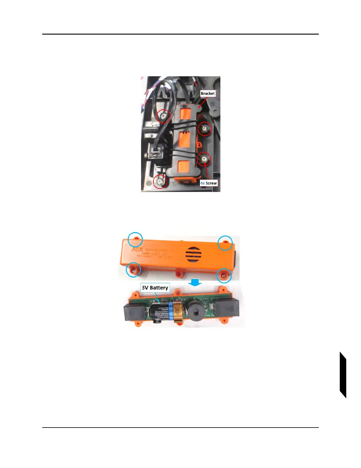 4. Remove the four retaining screws which secure the top cover to the audio alert indicator P/N