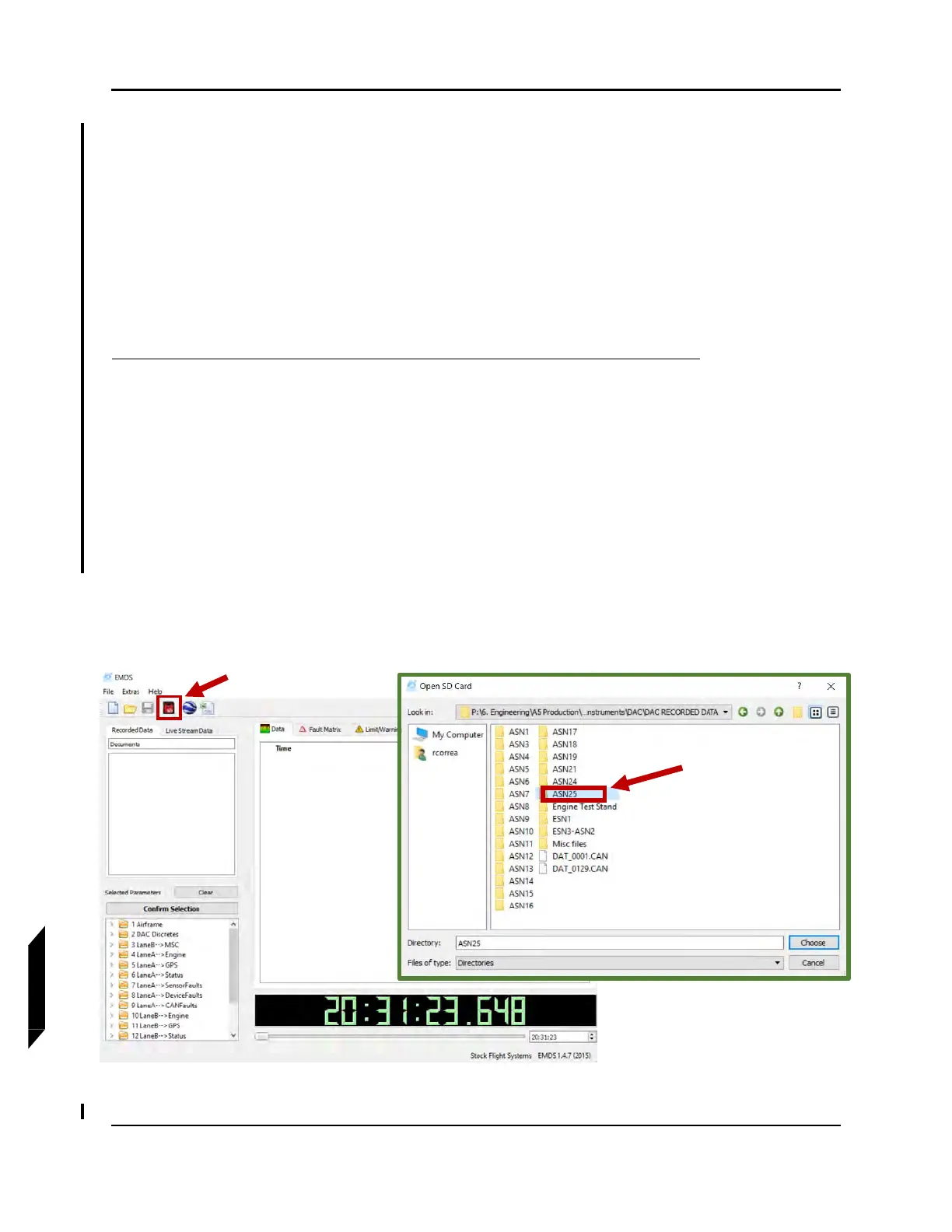 6. Open EMDS on the computer, click on the SD card button on top LH side to load folder. Select