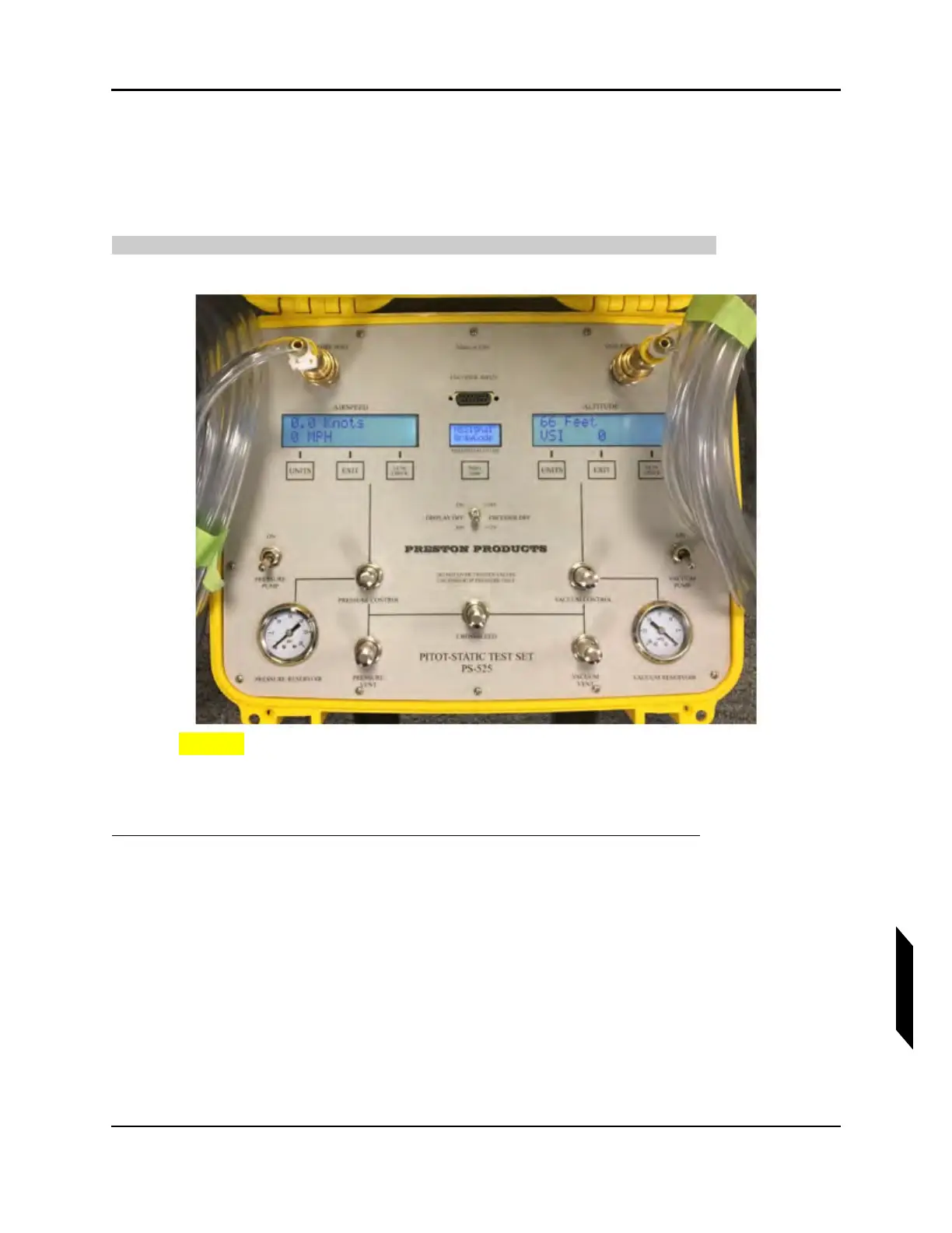 4. Ensure that the Pressure Reservoir and Vacuum Reservoir gages indicate 0 psi and 0 inHg