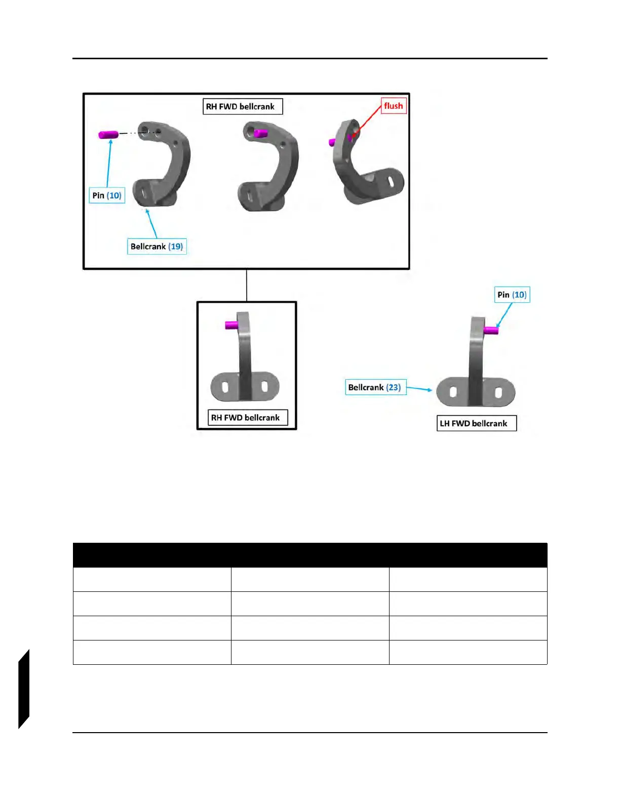 10. Insert bushings into the RH and LH forward bellcranks from the previous step as shown. Install