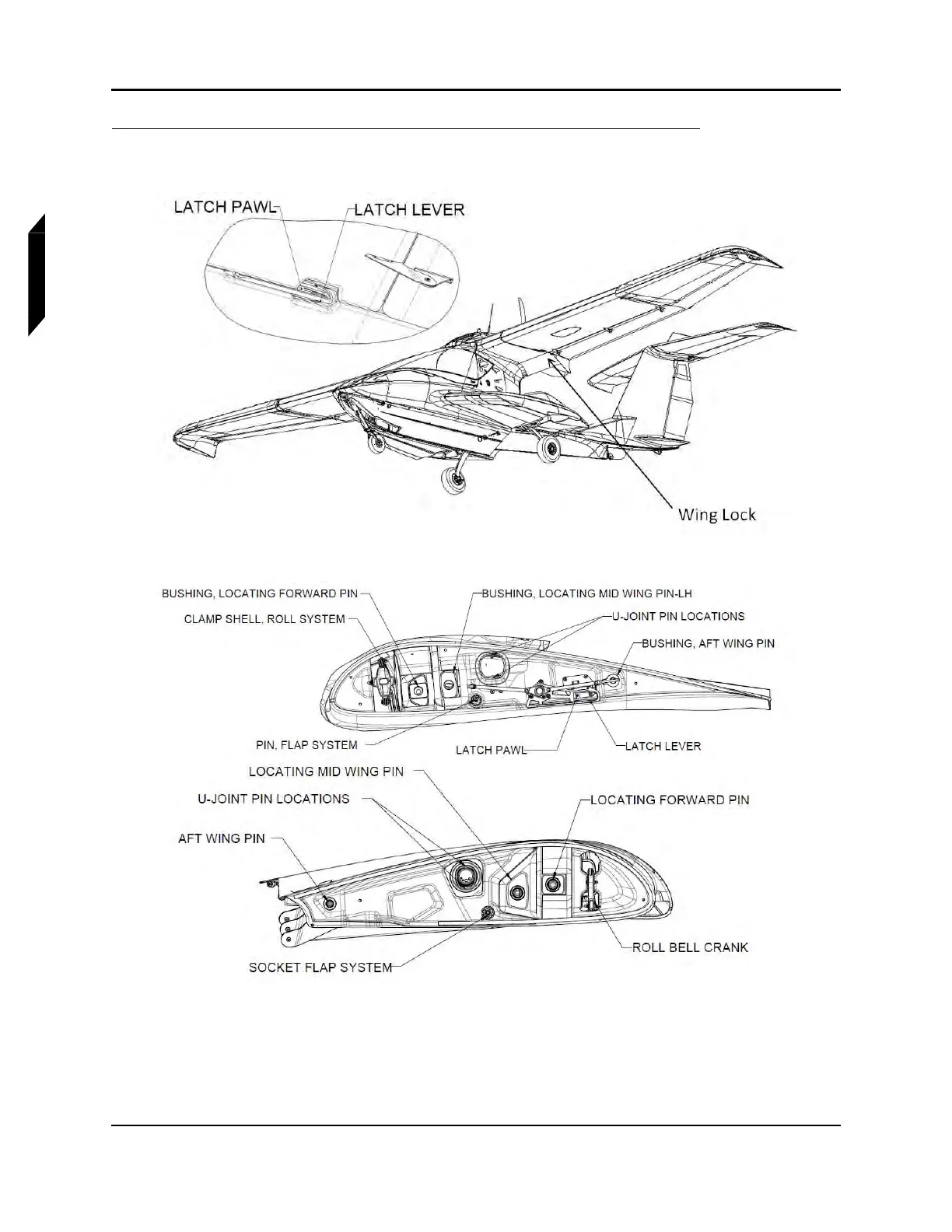 1. Unlock the wing locking mechanism by pressing the latch pawl on the wing lock switch, then