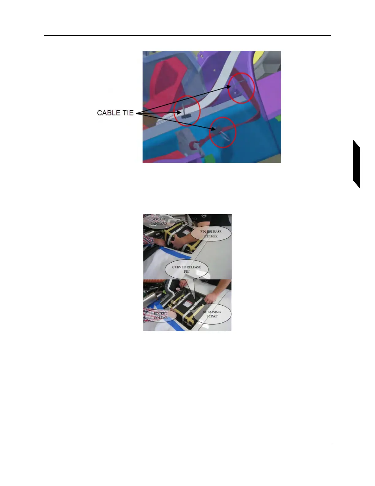 8. Install packed parachute assembly (Item 4) into parachute bay. Pin Release Tether and Retaining
