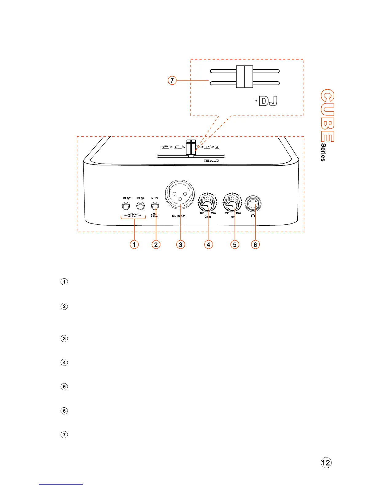 Switch to adjust the input level of inputs 1/2 & 3/4 for different input devices.