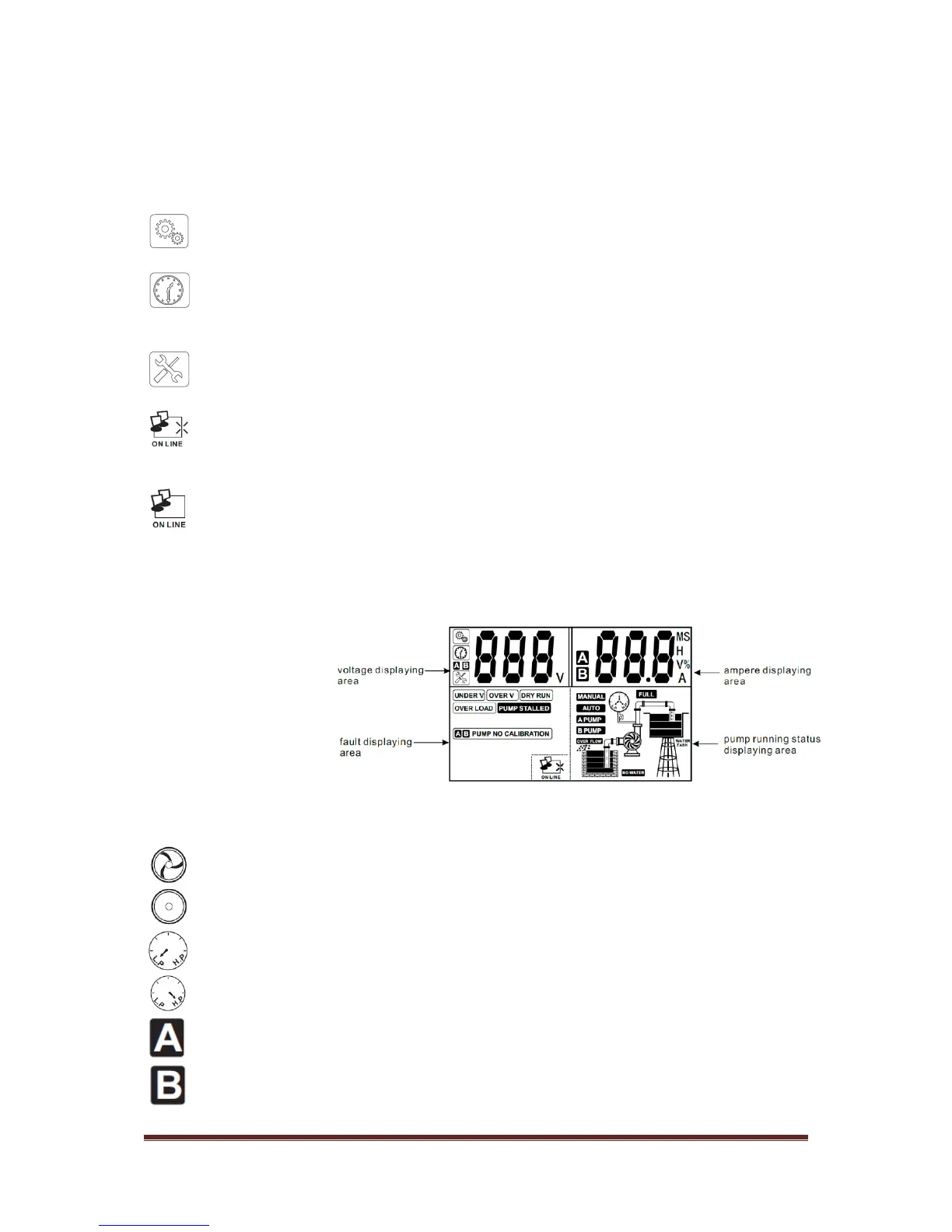pump fault icon, when this icon appears, it means pump control box is displaying