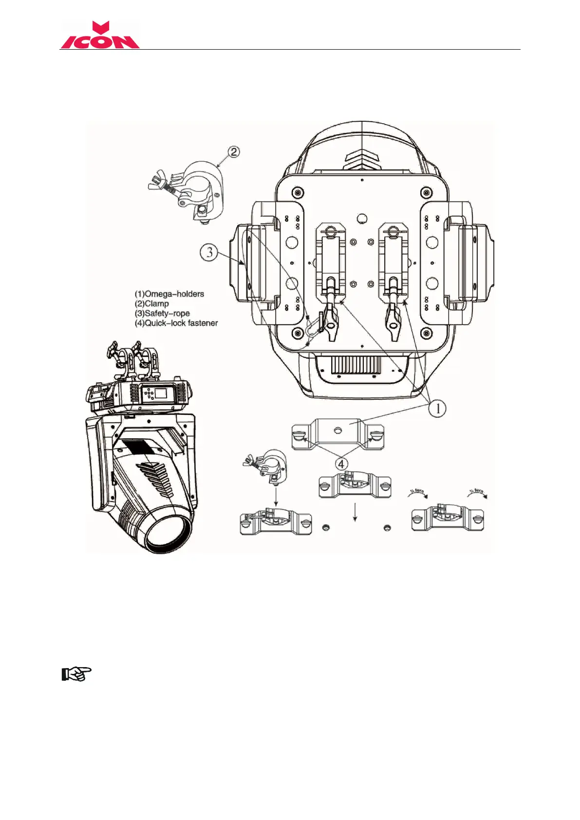 Insert the quick-lock fasteners of the first Omega holder into the respective holes on the bottom of