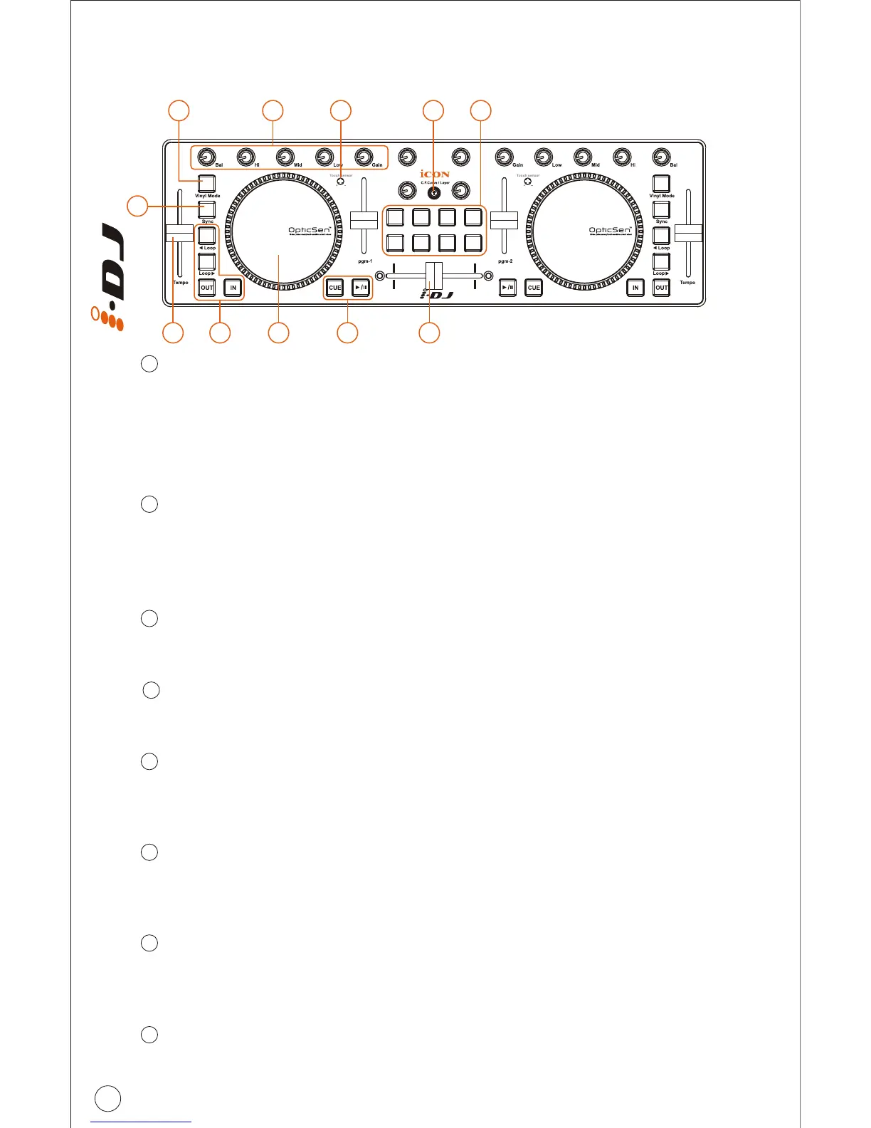 Press to activate the CUE, Play/Pause functions of each desk at your