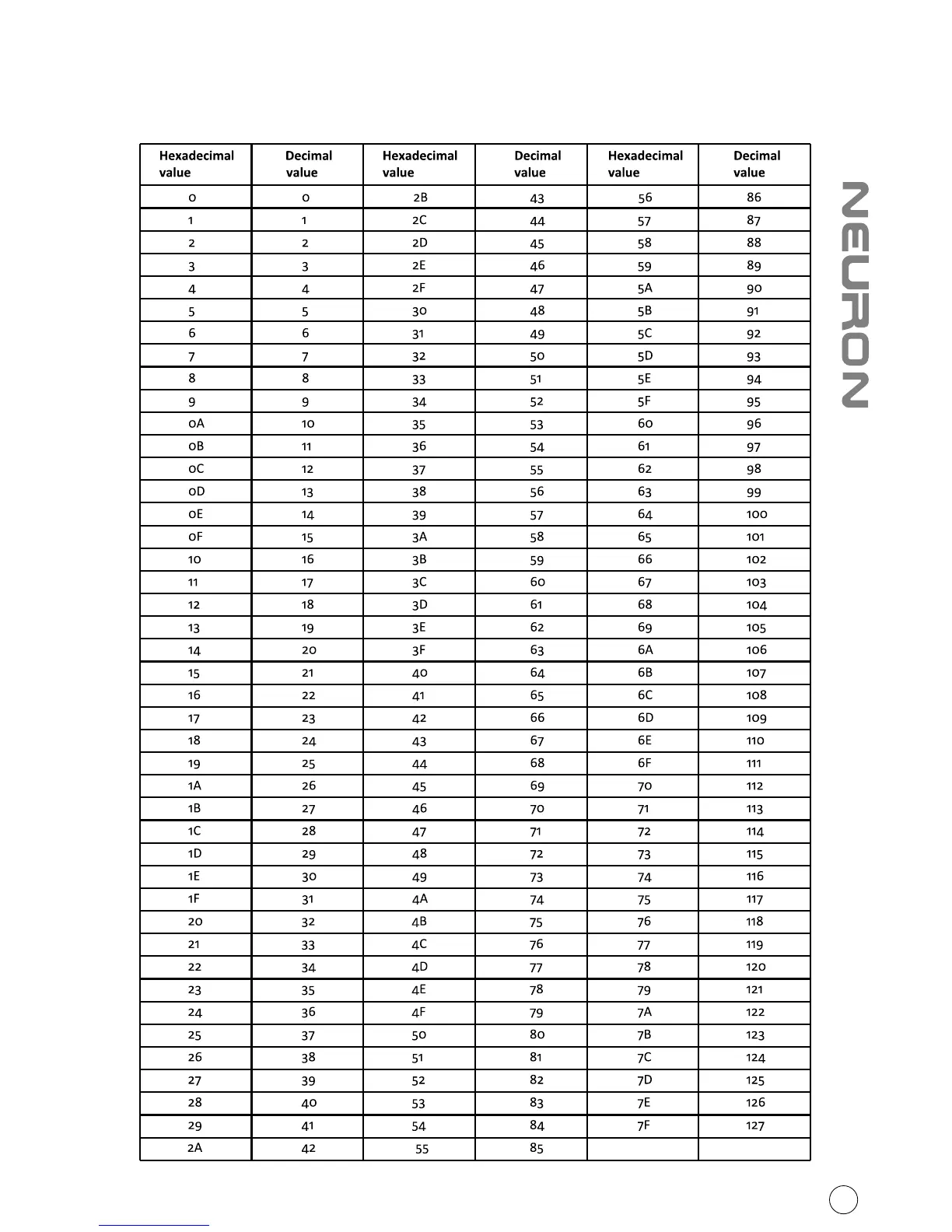 ICON Neuron 5 G2 - Appendix F; Hexadecimal Conversion Chart