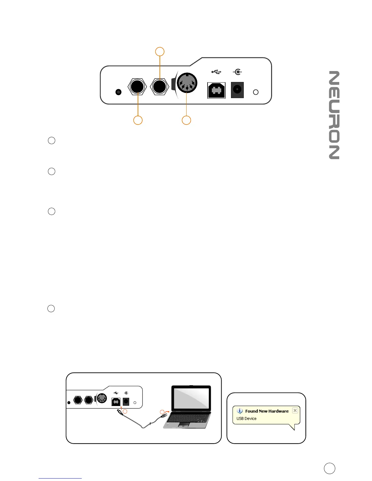 cable. Connect the cable's small jack end to the Neuron G2. Your Mac/PC