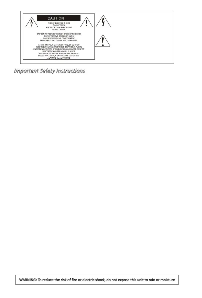 5. Do not expose this unit to rain or moisture. Avoid having water or other liquids spilled on this