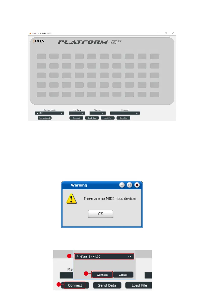 “There are no MIDI input devices” will appear. Please connect Platform B+ to