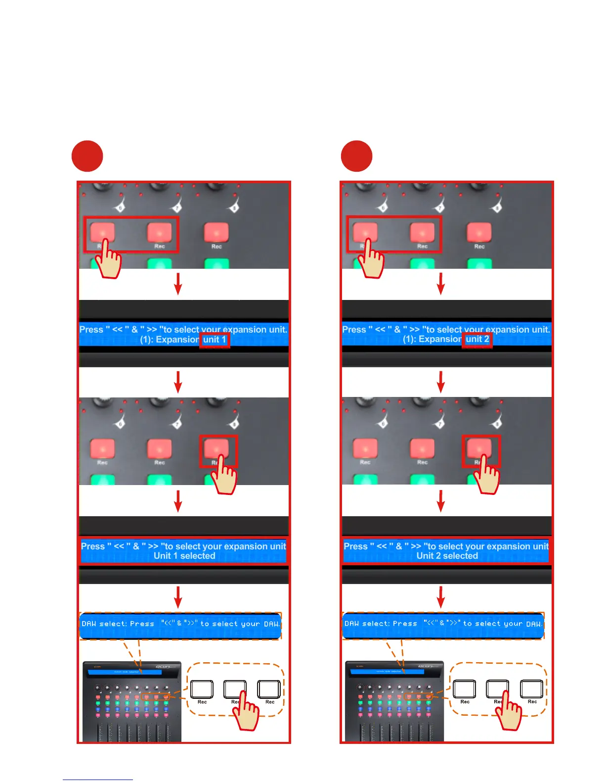 ICON QCon Pro G2 - Getting Started - DAW Selection (Expansion Units); Select Expansion Unit 1; Select Expansion Unit 2