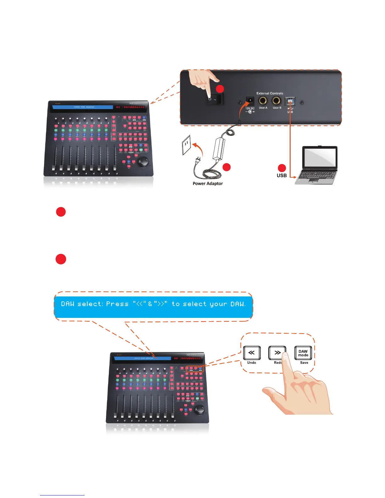 1. Connect the QconPro G2 to your Mac/PC via the USB port