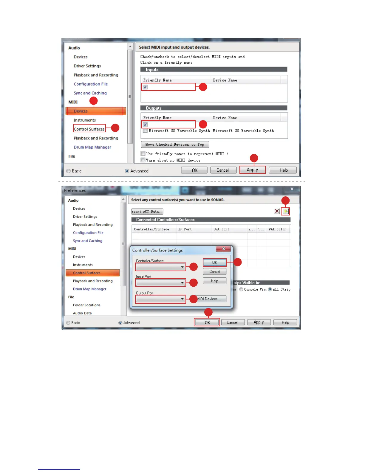 ICON QCon Pro G2 - DAW Setup - Sonar (Configuration); Configure Sonar MIDI Devices; Configure Sonar Control Surfaces