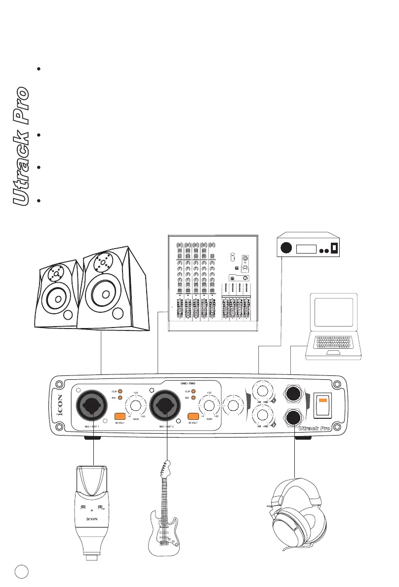 Connect the Utrack Pro's outputs to your amplifier, powered monitors or