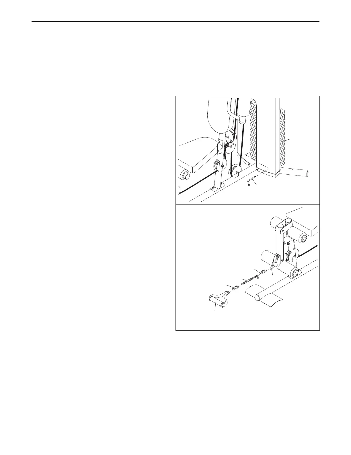 Make sure all parts are properly tightened each time the weight system is used. Replace any worn parts immediate-