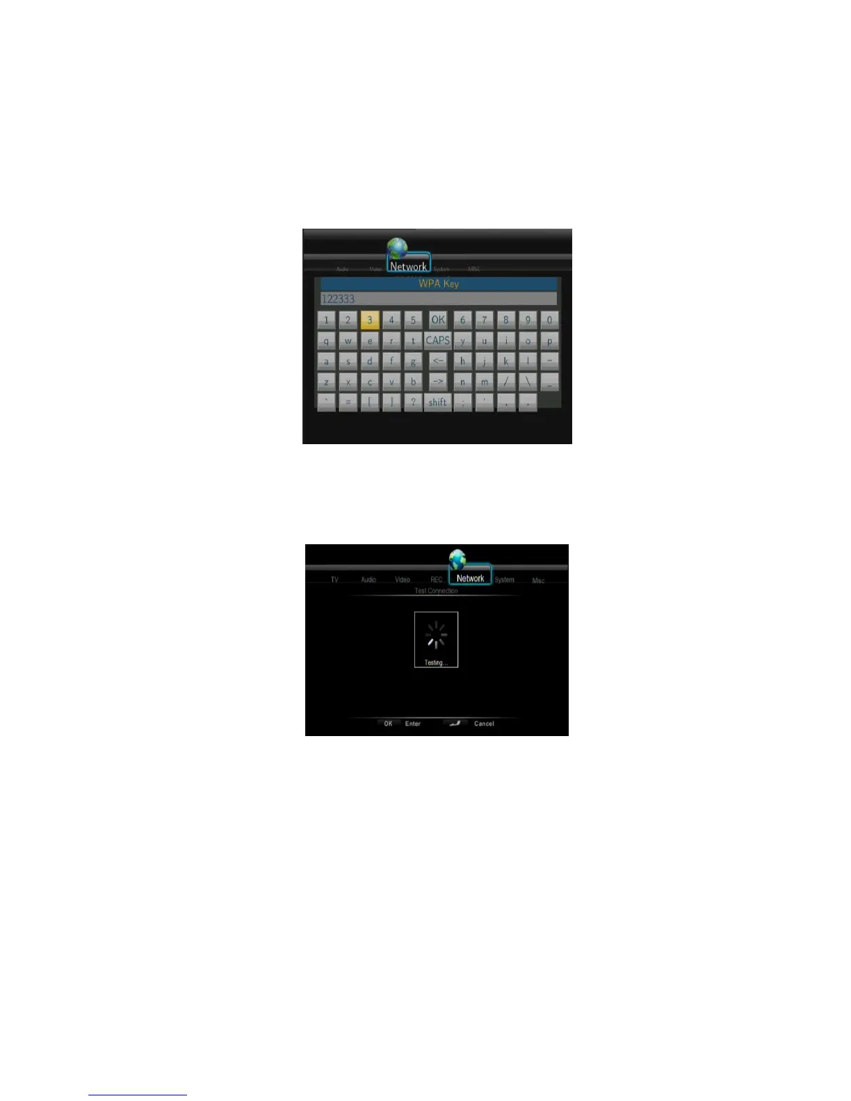 Encryption keys can be inputted via the virtual keyboard. Press the navigational buttons to