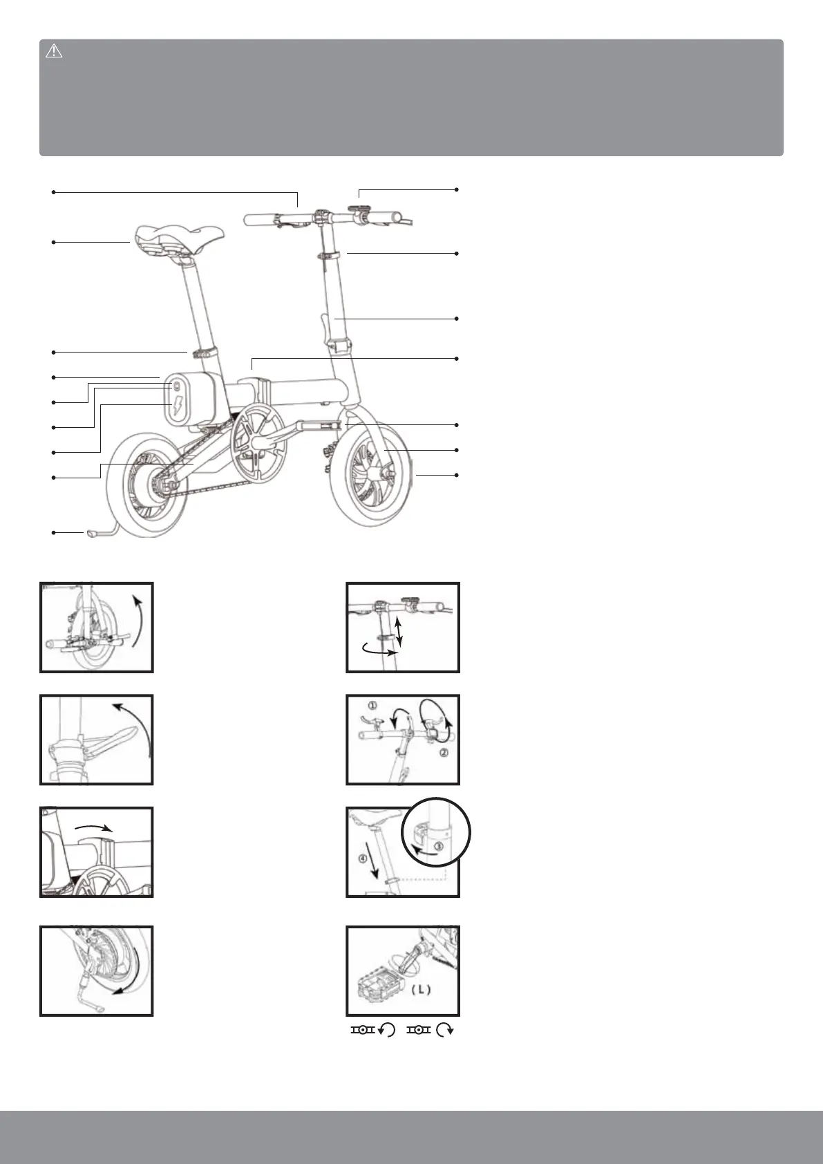 • Das E-Bike wurde im vormontierten Zustand ausgeliefert. Vor der ersten Inbetriebnahme ist es deshalb unbedingt erforderlich,